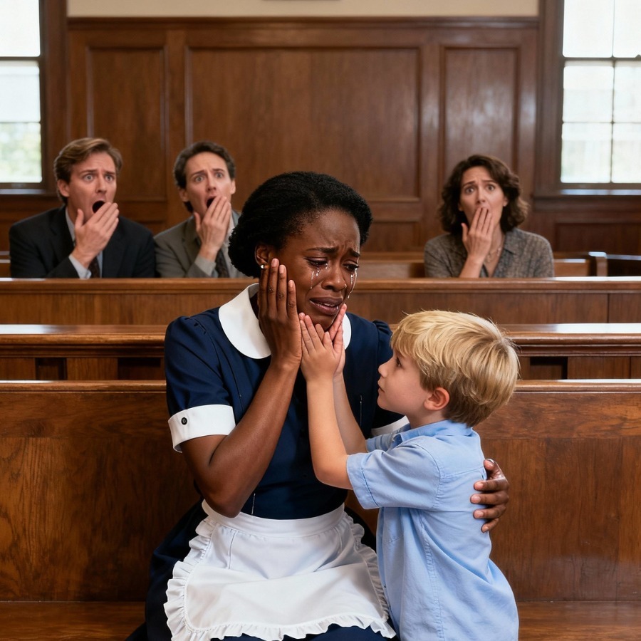But in the middle of the trial, when it seemed that nothing could save her, the unexpected happened. The millionaire’s youngest son, who loved her like a second mother, broke free from his nanny, ran into the courtroom, and revealed a shocking secret that would change the course of the case forever.