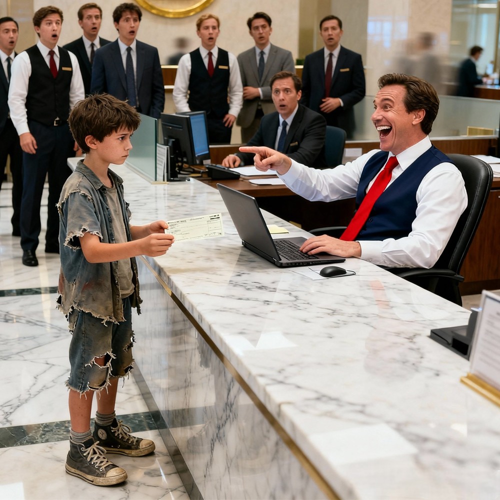 Excuse me, sir. I’d like to check my account balance, please. A black kid in worn out shoes stood at the counter. 10 years old, cracked soles, frayed laces, thrift store jacket swallowing his small frame. The bank manager stopped, looked the boy up and down slowly, then burst out laughing. “Check your account?” His voice echoed across the marble lobby.