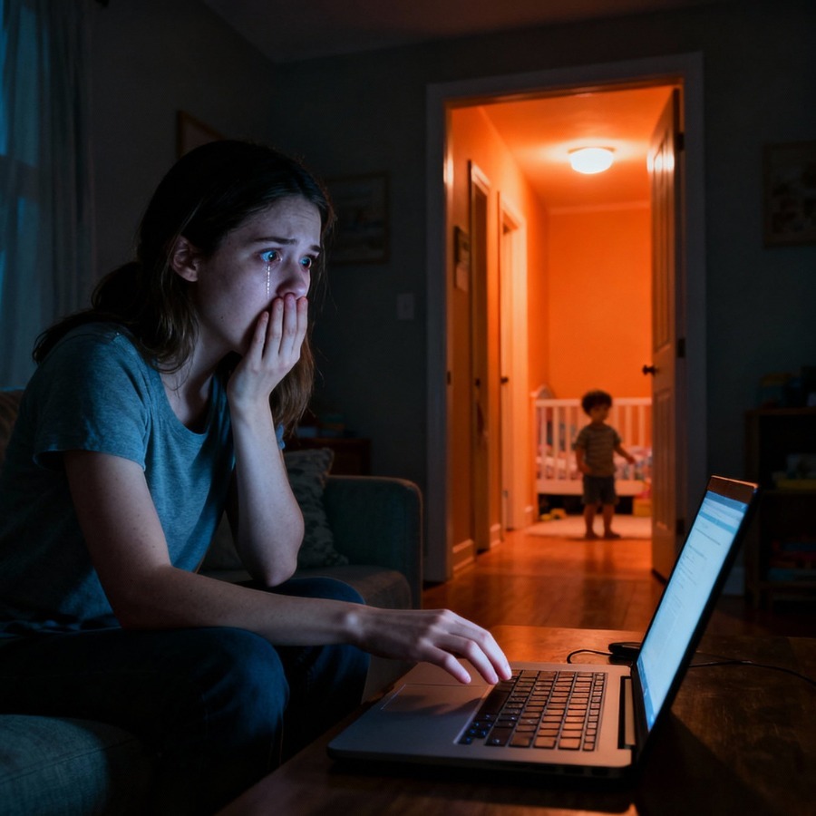 She sat upright — suddenly, mechanically — and stared toward the dark corner of the room. The nightlight’s soft glow revealed nothing there.