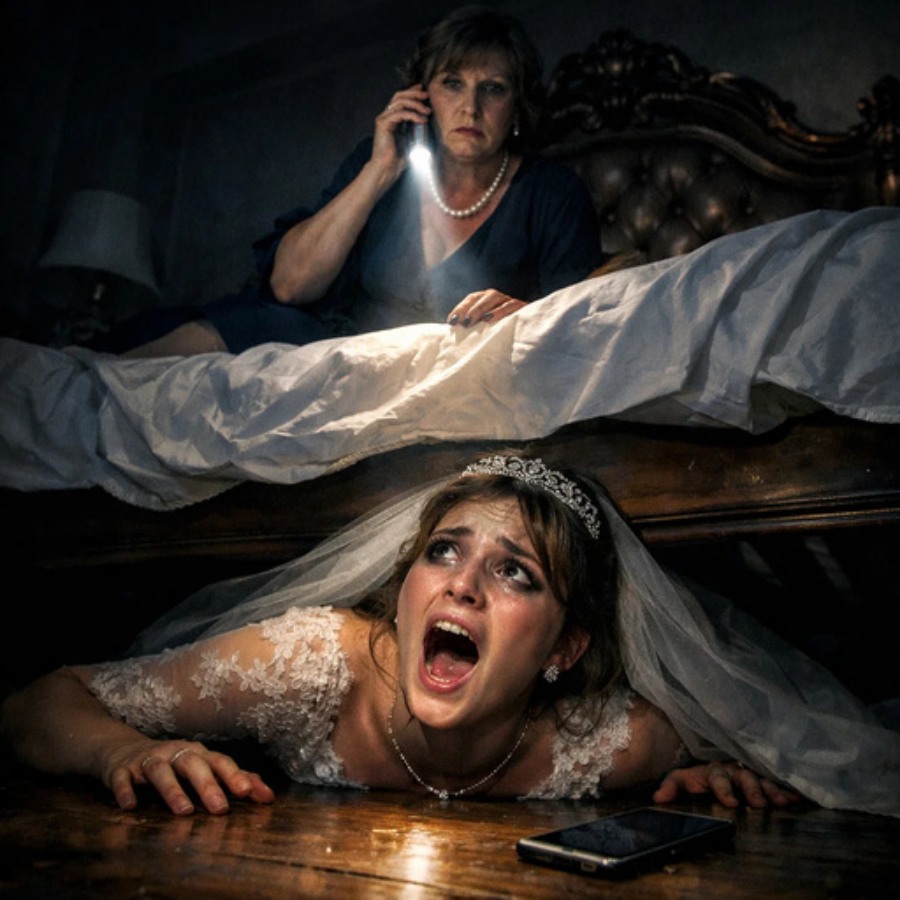 When I was sure the hallway was empty, I crawled out from under the bed on trembling legs. My wedding dress pooled around me like a costume from a life that no longer belonged to me.