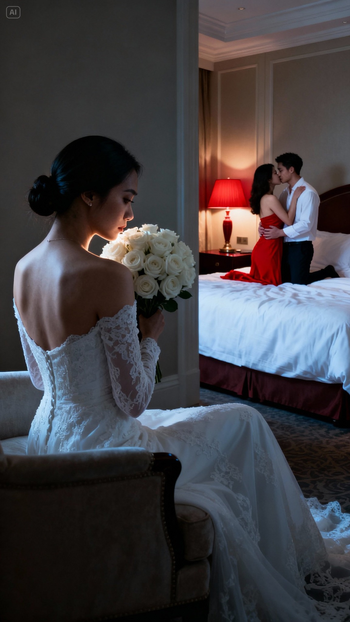 One hour later, they were still together in that room. I had bolted out, my gown torn at the hem, the echo of their laughter following me down the hallway. I hid in the emergency stairwell, gripping the railing so hard my knuckles whitened.