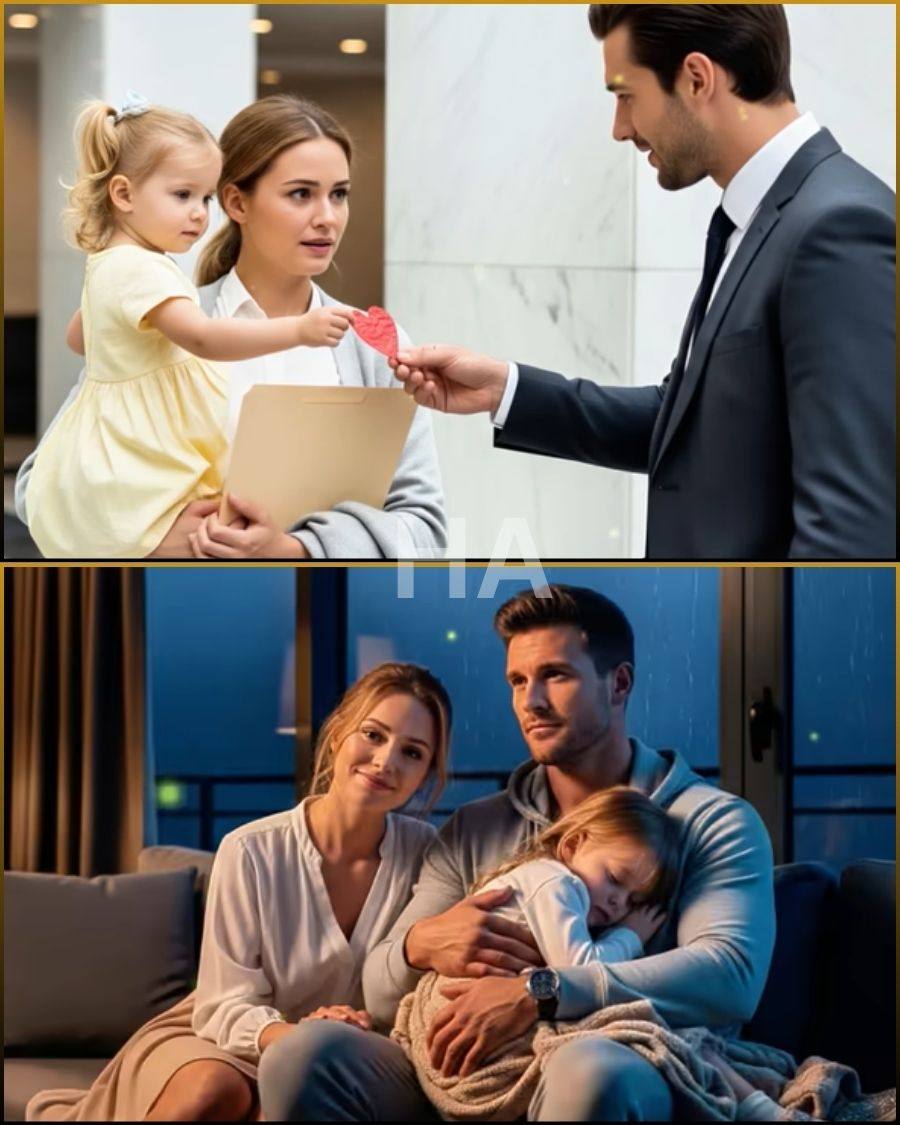 Autumn Hayes stood in the glass-walled lobby of Grant & Co. clutching a manila folder like a life raft. The marble floor felt cold under her heels; the baby-blue dress she had found in a donation bin the night before was clean and pressed, but her hands betrayed the long hours of worry and odd jobs. At her side, three-year-old Ellie watched the revolving doors with wide, curious eyes, tiny fingers wrapped around her mother’s.