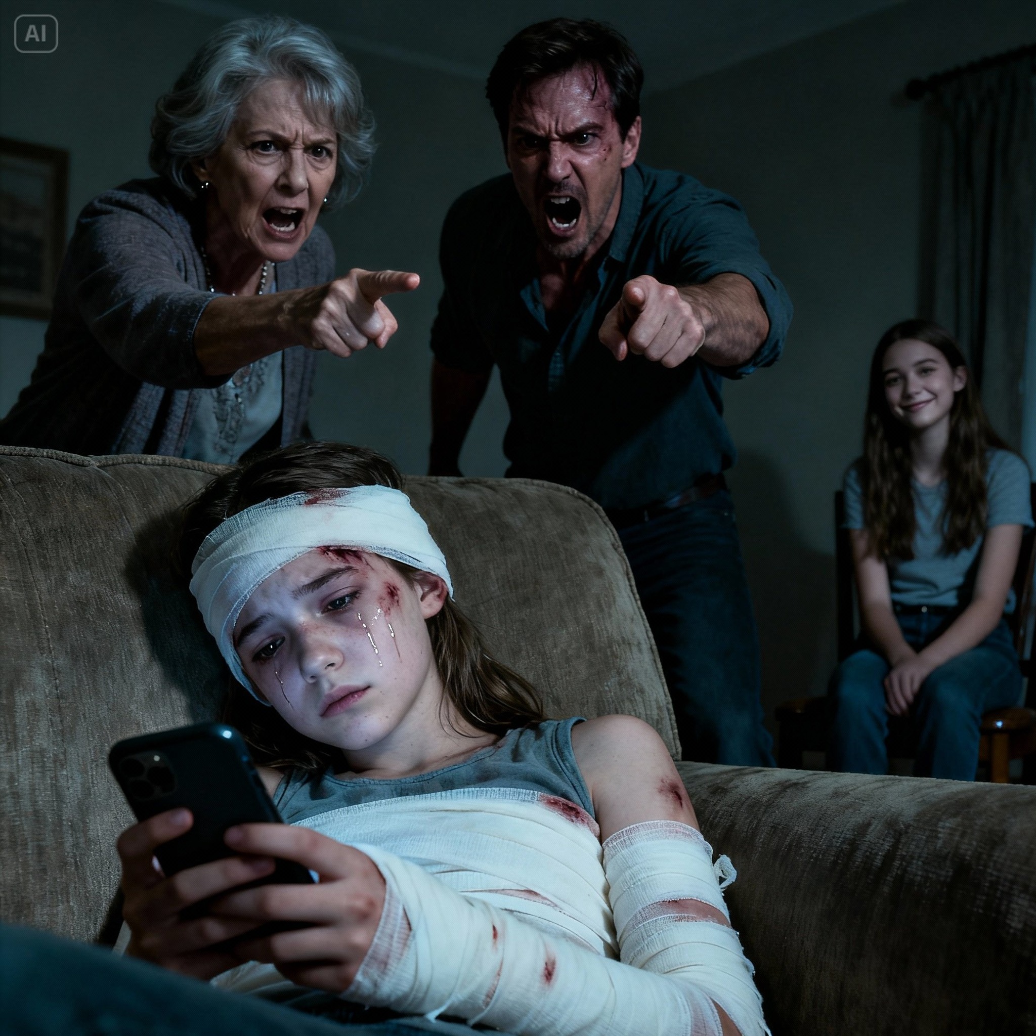 I tried reaching for my phone to call 911, but before I could dial, my mother snatched it from my hands. “It’s just a rib,” she said, her voice chilling in its calmness. “Don’t ruin your sister’s future over this.” My father didn’t even look at me. “Drama queen,” he muttered before walking away.