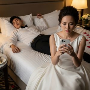 Đêm tân hôn. Tôi và Lệ bước vào căn phòng đã được trang trí lộng lẫy. Sự ngượng nghịu bao trùm. Tôi cảm thấy có lỗi với cô ấy vì sự thờ ơ của mình, nhưng lại không thể ép buộc trái tim mình yêu thương một người chỉ vì trách nhiệm. Tôi đi tắm trước, khi trở ra, Lệ đang ngồi bên giường, cô ấy đã thay váy cưới bằng bộ đồ ngủ mỏng. Cô ấy cúi đầu, mái tóc đen dài che khuất gần hết khuôn mặt.