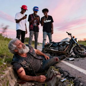3 teenagers who hit old biker were busy filming him for social media instead of calling 911. They stood there laughing, actually laughing, as this 64-year-old grandfather tried to crawl toward his destroyed Harley, his left leg bent completely backwards, blood pooling beneath his helmet.
