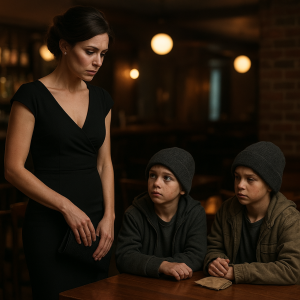“Ma’am, can we have some of your leftovers?” The quiet murmur froze the air in the luxurious restaurant. Heads turned toward the entrance, where two thin boys…