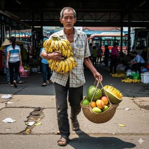 Trưa hôm ấy, trời nắng chang chang, ông Hòa – một người đàn ông ngoài 60 tuổi, dáng gầy, làn da rám nắng, lưng còng vì lao…