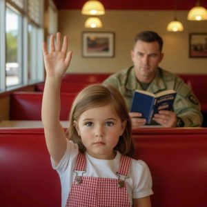 A little girl, no older than three, raised her tiny hand at a diner—her thumb tucked in, fingers folding over it. The S.O.S. signal was clear. A soldier at a nearby table noticed and, hiding his alarm, offered her a piece of candy. Her so-called father reacted instantly, striking her across the face.