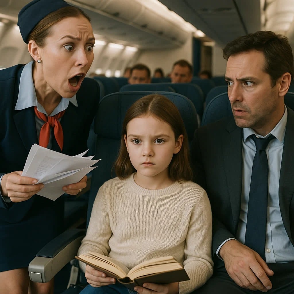11-Year-Old Asked to Switch Seats— Then the Crew Hears Her Last Name and the Cabin Falls Silent……The twin-jet’s cabin lights glowed that soft, early-morning amber that makes every shadow feel longer than it should. From the moment she stepped on board, the girl in the navy-blue dress seemed carved out of that glow—quiet, self-possessed, unreadable. Most passengers noticed her only in passing, the way you notice a page number while thumbing through a book. But two rows up, one passenger did more than notice.