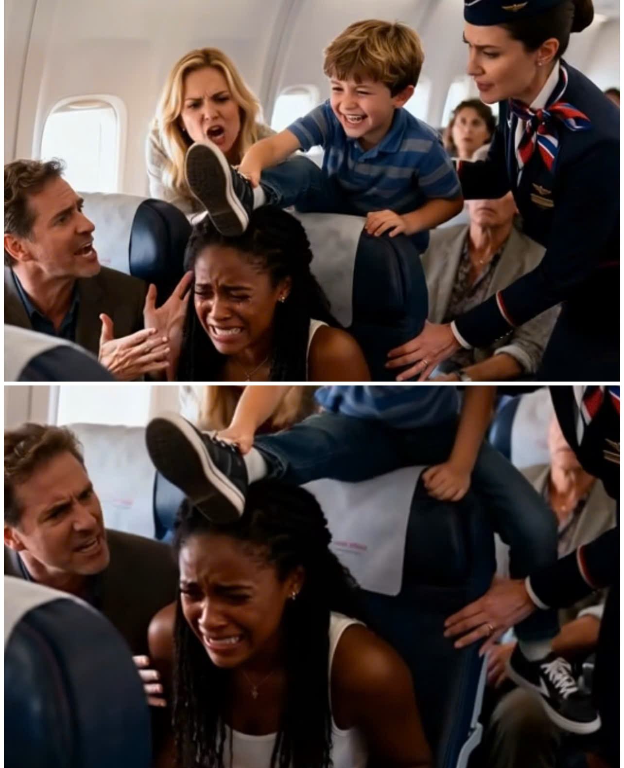 A boy kept teasing and kicking a black girl’s seat on a plane, but when the flight attendant stepped in to remind her, the boy’s mother yelled: “He’s just a kid, the problem is that black monkey…” The airline’s reaction made both mother and son regret…