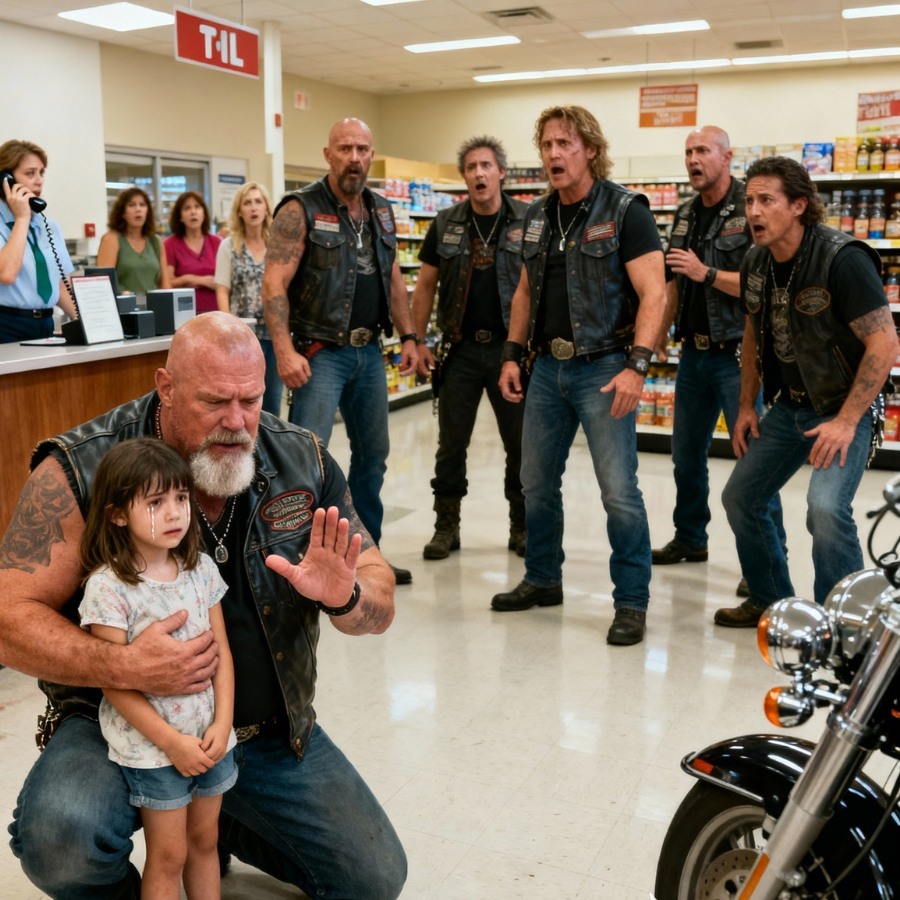 At Walmart, a mute six-year-old girl ran into a large biker’s embrace, signing frantically with tears running down her cheeks. Despite his rough appearance, he signed back fluently, soothing her while shoppers backed away. He suddenly became serious and asked, “Who brought her here? Where are her parents?” The girl signed again, and his expression turned grim. She came to him deliberately—she knew his biker patches and trusted him. He told me, “Call 911 now. There’s a kidnapped child at the Walmart on Henderson.”