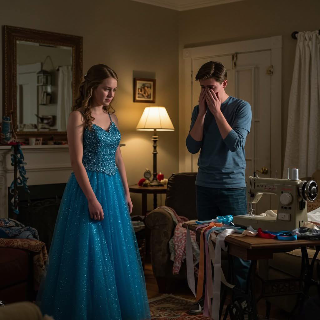 Jake spent every evening hunched over their mother’s old sewing machine, watching tutorials, pricking his fingers more times than he could count. He saved up tips from helping neighbors with yard work and bought fabric in Emma’s favorite shade of midnight blue.