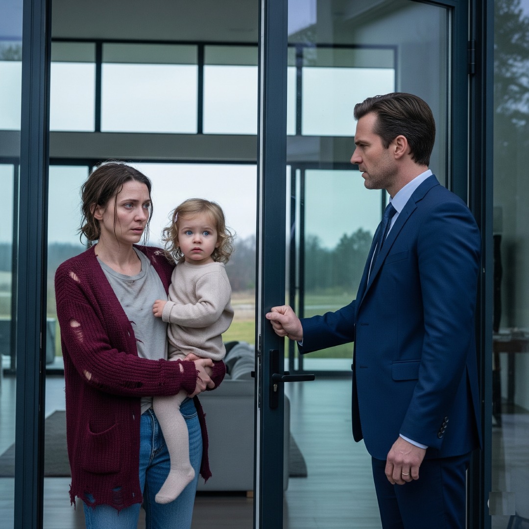 A woman stood there, soaked to the bone, holding a little girl no older than two. Her clothes were worn, her eyes hollow from exhaustion. The child clung to her sweater, quiet and curious.
