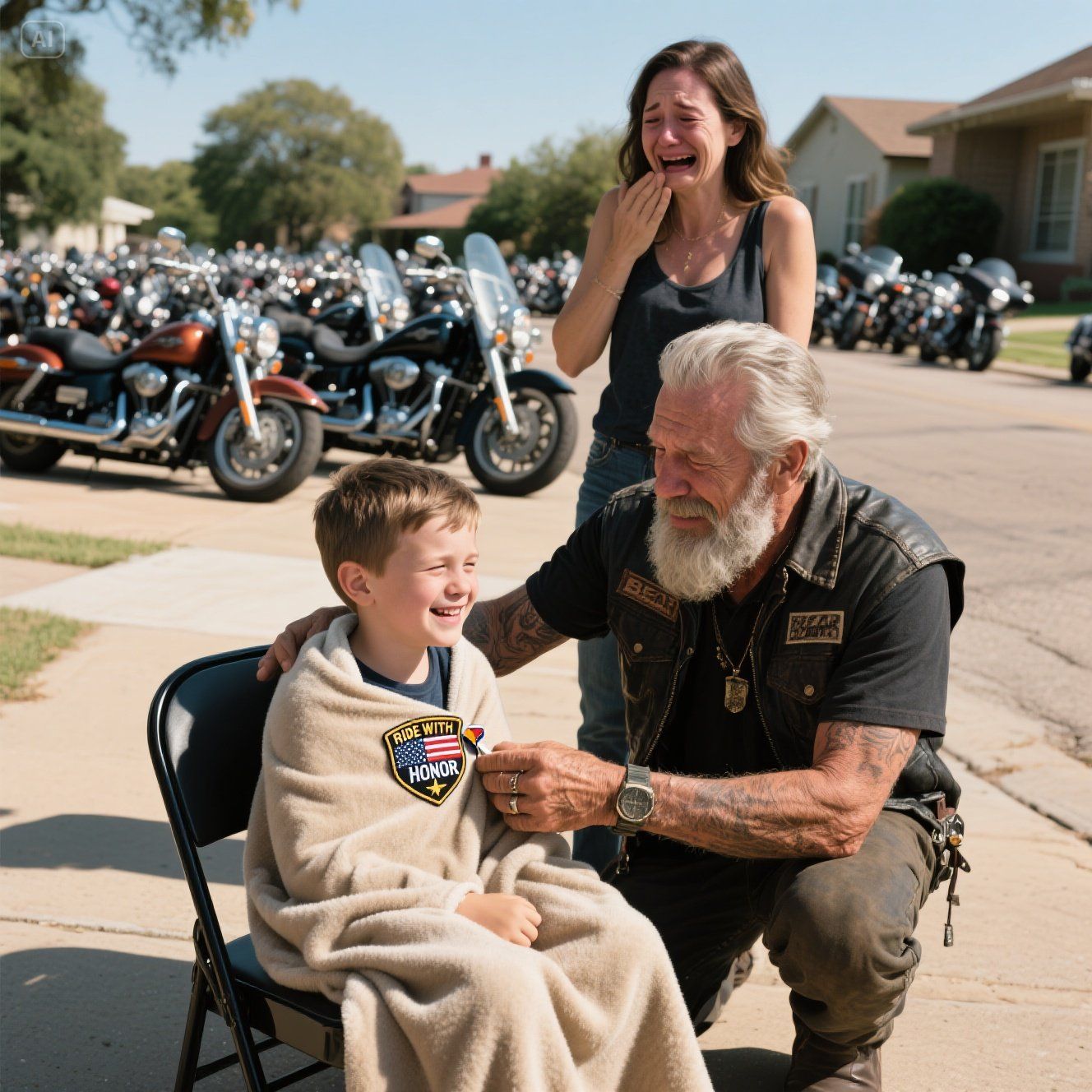 One by one, the bikers rolled past, waving at the little boy in the window. Some stopped to hand him small gifts: a miniature helmet, a Harley cap, a stuffed bear wearing a biker jacket.