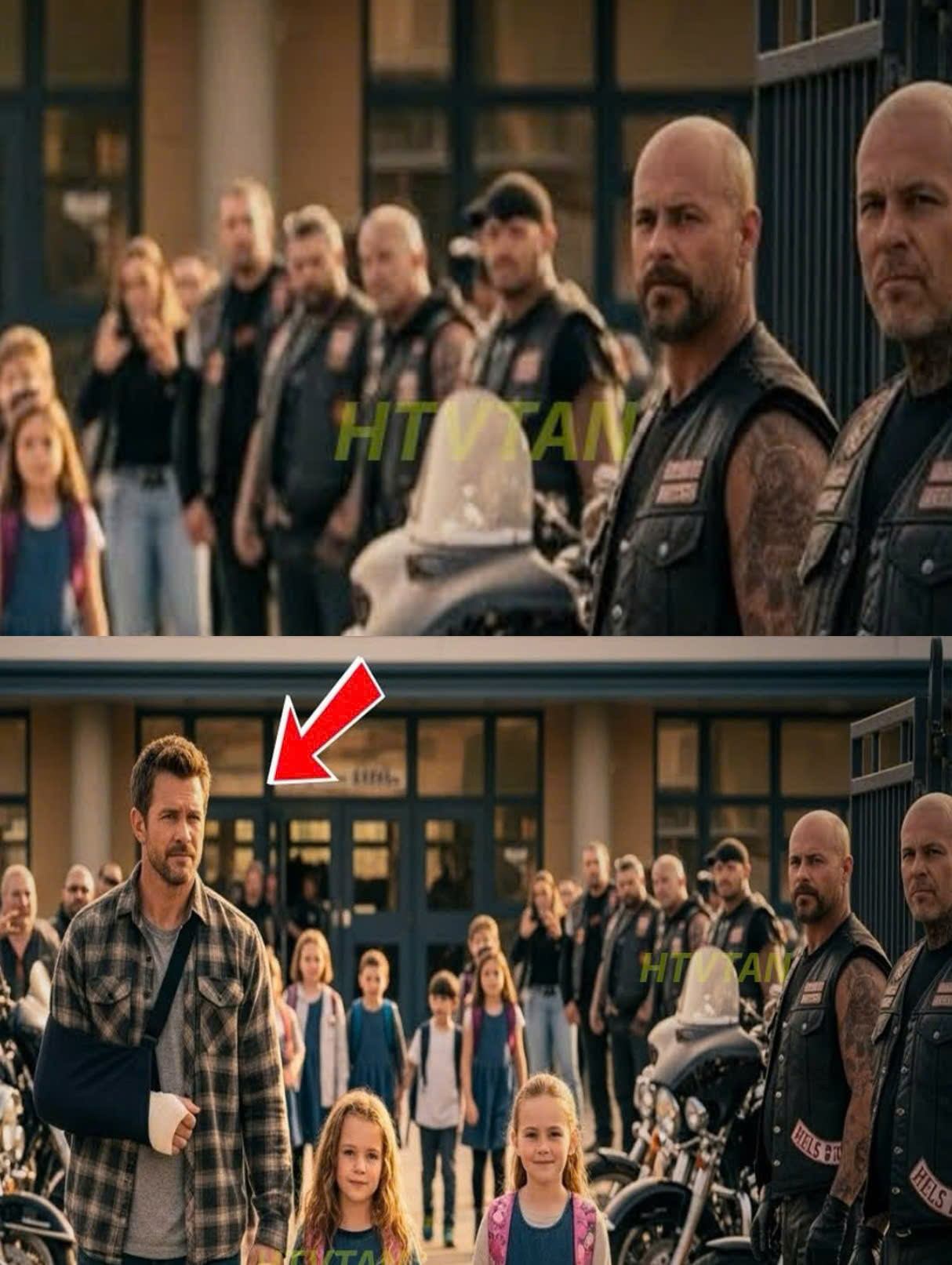 Single Dad Took Bullet for Biker’s Daughter — Next Day Hells Angels Brought Her to School With Pride… The sound cracked across the parking lot like thunder.