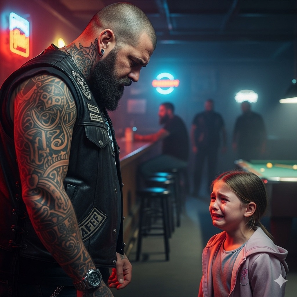 Every biker, clad in leather, fell into a sepulchral silence in that smoke-filled bar. The girl, in pajamas covered with Disney princesses, stood at the doorway with tears streaming down her cheeks, staring at thirty rough men as if they were her last hope. Johnny Cash played in the background, but the music seemed to fade. Even the pool games froze mid-shot.