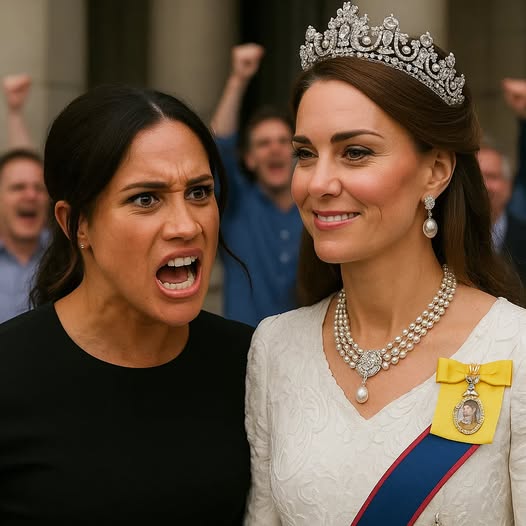 In a jaw-dropping twist that has royal-watchers buzzing, Meghan Markle allegedly exploded in rage when she found out that the late Queen’s vast jewelry collection — worth a staggering £70 million — was awarded to Princess Catherine, not her. According to insider whispers, the Duchess was overheard shouting two chilling words: “It should be mine!”
