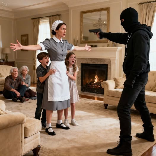 The Robbers Thought The Maid Was Helpless. They Chose The Wrong Mansion…..A gunshot split the air. Bang, the chandelier shook. Shards of dust raining down, screams exploded through the hall. Children cried, men in suits scrambled to the floor, hands over their heads. Down, everyone down, one of the masked robbers roared, waving his pistol.