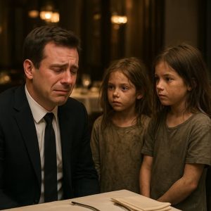 Two homeless girls stood by the millionaire’s table: “Sir… can we have your leftovers?”The elegant restaurant fell silent.Near the entrance stood two little girls, no older than…